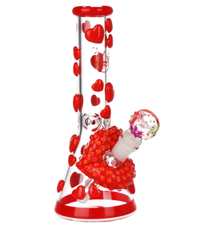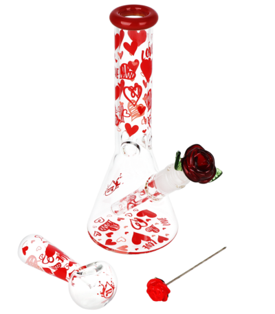 The Valentine’s Hearts ‘n’ Roses Glass Herb Pipe Duo from Pulsar includes a water pipe, hand pipe, and poker tool,