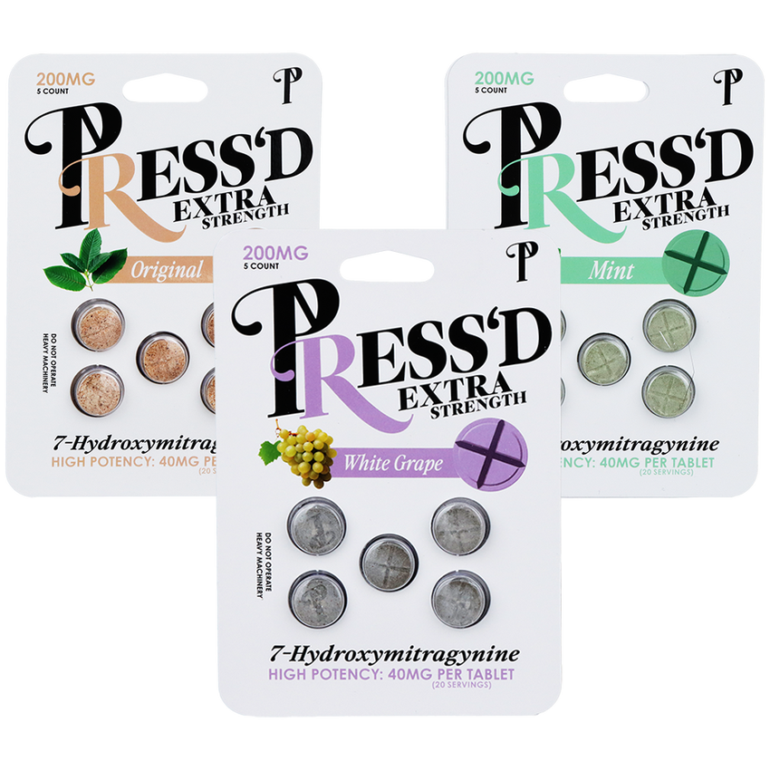 Press’d Extra Strength 7-Hydroxymitragynine Tablets | 200mg | 5pc | 10pk Display
